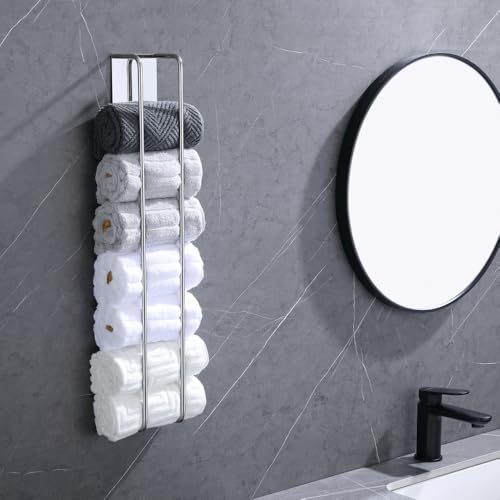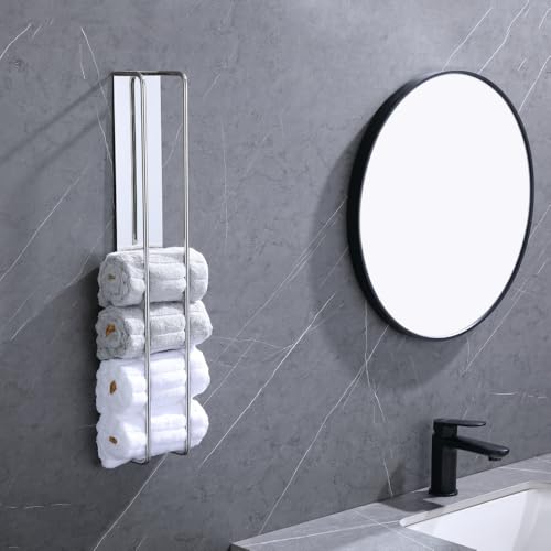 - المقاس الأكبر: الطول 60 سم، العرض 9 سم، العمق 7 سم. حامل المناشف هذا كبير بما يكفي لتخزين 8 مناشف ملفوفة. متعددة الوظائف وعملية، مثالية للحمام ومرحاض الضيوف، موفرة للمساحة.