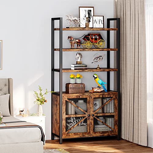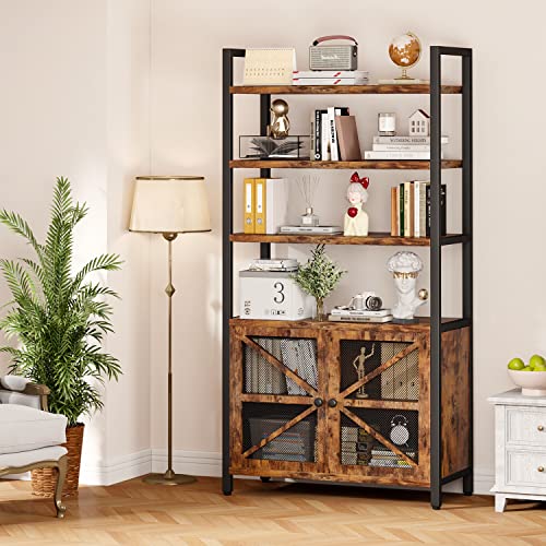 Homeiju - رف كتب من 6 طبقات من هوميجو، معدن خشبي هندسي، ملمع