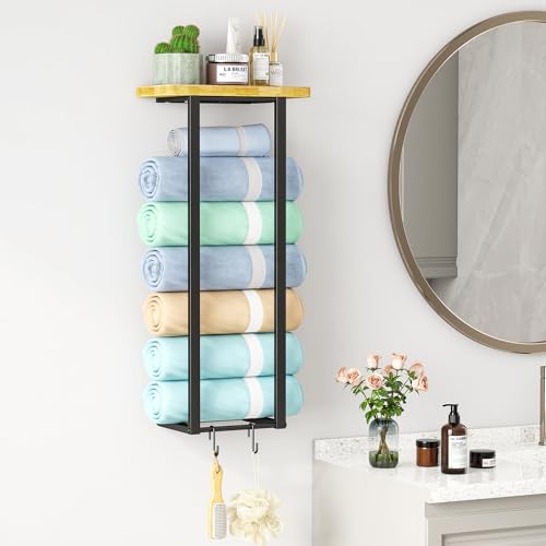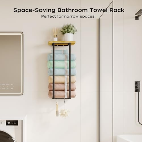 Homeiju - رفوف فوط للحمام، حامل مناشف مع رف تخزين، حامل فوط 8 سم يثبت على الحائط للحمام الصغير، رف تخزين الفوط على الحائط للفوط الملفوفة