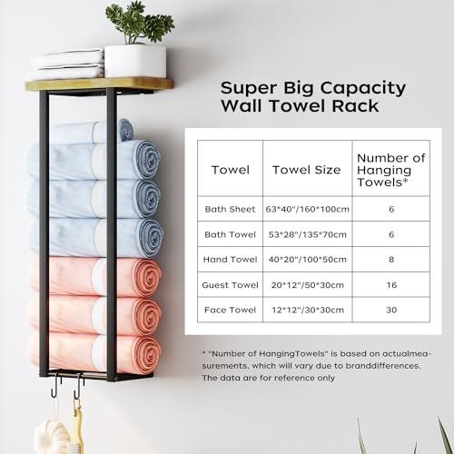 - موفر للمساحة: يستخدم رف الفوط الجداري هذا المساحة غير المستخدمة على الحائط ويتميز بتصميم تخزين عمودي يسمح لك باستخدام مساحة محدودة للحفاظ على الفوط منظمة بشكل أنيق وفي متناول اليد. مع حجم تخزين فوط الحمام 20 سم طول × 15 سم عرض × 70 سم ارتفاع، يمكن لرف الفوط هذا تخزين 7 قطع من فوط الحمام ذات الحجم العادي أو 5 قطع فوط حمام كبيرة جدًا، ما يجعله حامل فوط حمام ممتاز للمساحات الصغيرة