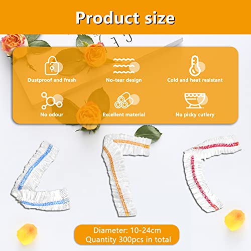 HOMEJOY - أكياس تغطية وحفظ الطعام الطازج بلاستيكية ملونة مرنة، لحفظ الطعام والفواكه والخضروات من هوم جوي، 300 قطعة