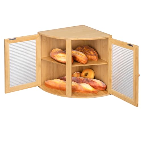 HOMEKOKO - صندوق خبز من خشب البامبو بتصميم عتيق مزدوج الطبقات وكبير السعة لتخزين الخبز والطعام للطاولة وسطح المطبخ من هومكوكو (بامبو طبيعي)