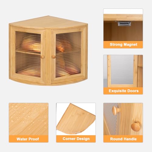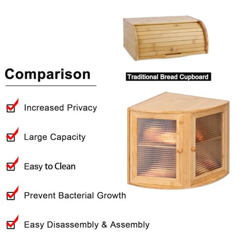 - [متين وأنيق وسهل التجميع] تعد الحافظة البامبو خيار مثالي لتخزين وعرض الخبز والمخبوزات ويضفي تصميمها الأنيق بنمط منزل المزرعة لمسة مميزة إلى الديكور الريفي لمنزلك. تتضمن العبوة مفك لسهولة التجميع. منتج حاصل على براءة اختراع، لذا احذر التزييف.
