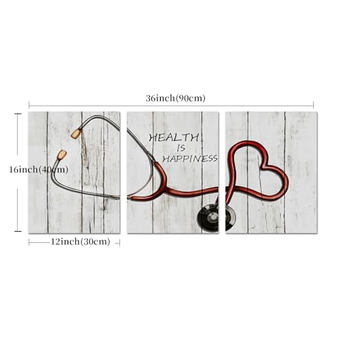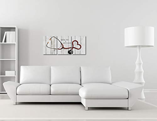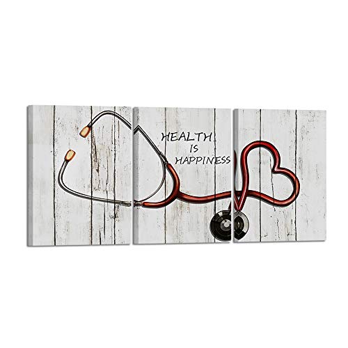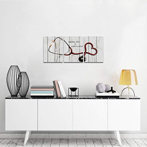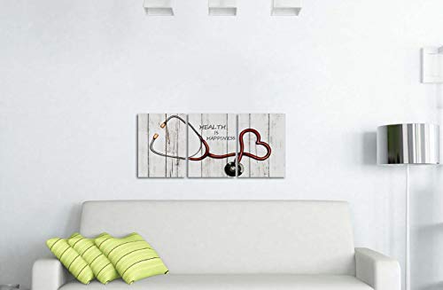 HOMEOART - هوموارت لوحة فنية جدارية قماشية لديكور العيادة والادوات الطبية ومقياس الصدى مطبوع عليها اقتباسات صحية على القماش كهدية للطبيب والممرضة رمادي وأحمر