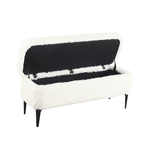 HomePop - مقعد تخزين عصري كبير بفرو صناعي من هوم بوب، لون أبيض