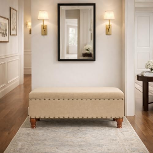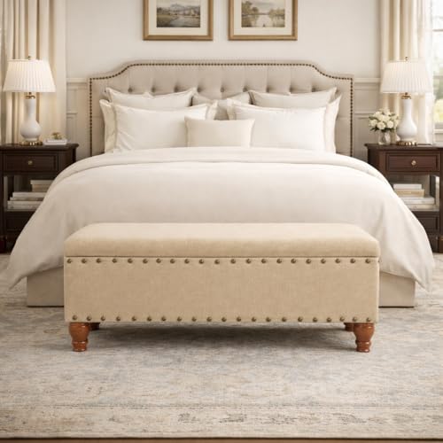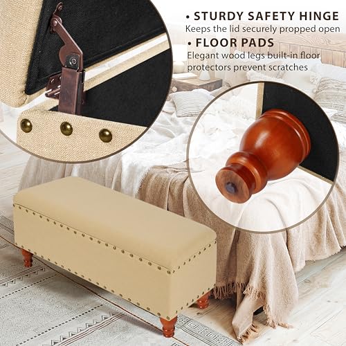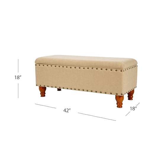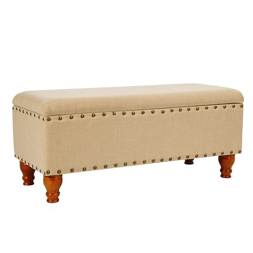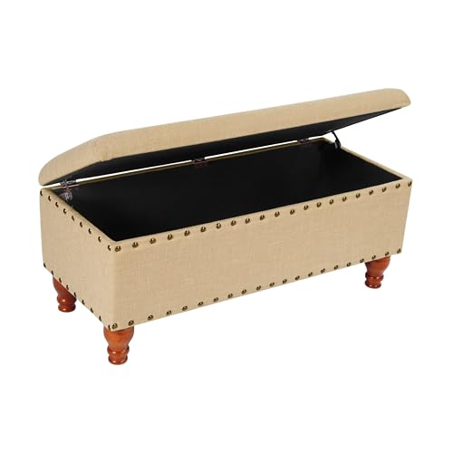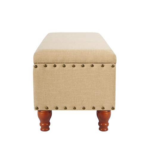 HomePop - هوم بوب مقعد تخزين كبير الحجم من الكتان مع حافة راس اظافر، تان لينين