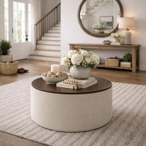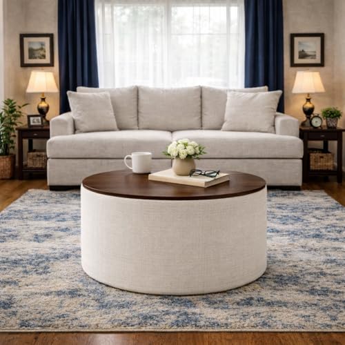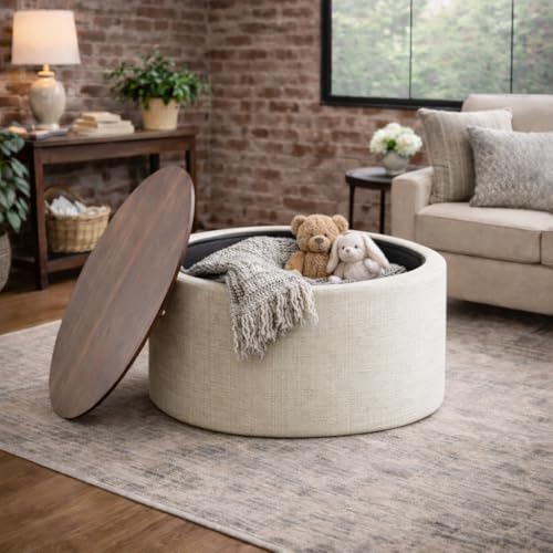 HomePop - هوم بوب مسند تخزين قماشي عصري بجزء علوي خشبي - نسيج كريمي مقاوم للبقع