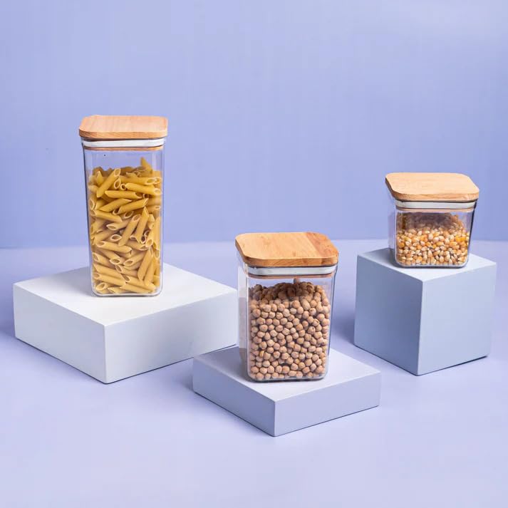 HomePro - مجموعة حاويات مربعة من خشب الاكريليك من 3 قطع من هوم برو