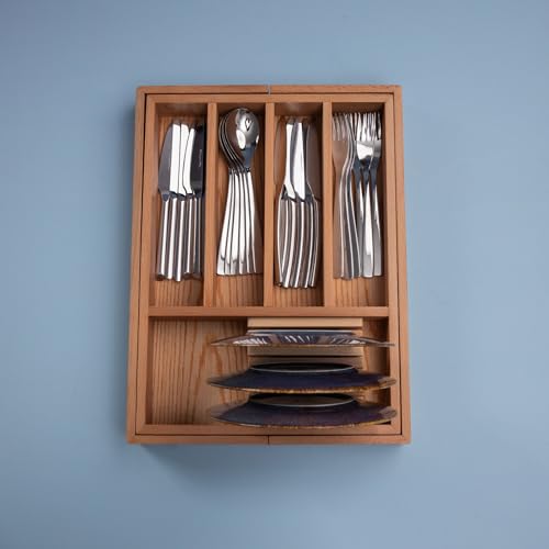 - تصميم متعدد الأقسام: ينظم السكاكين والشوك والملاعق والأطباق بكفاءة لمطبخ خالٍ من الفوضى.
