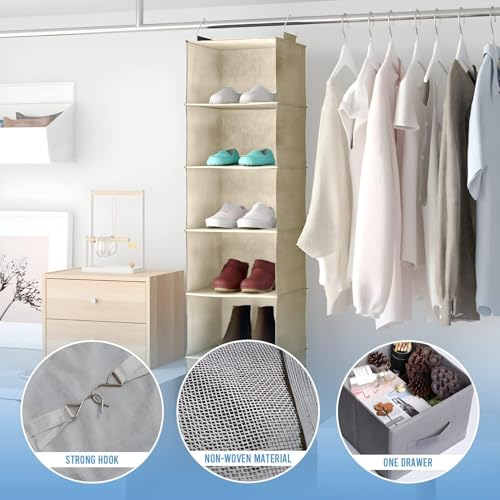 HOMERA - منظم خزانة معلق من 5 أقسام من هوميرا للأحذية والملابس، وحدة تخزين موفرة للمساحة مع قماش قوي لتنظيم خزائن الملابس وغرف النوم في مصر