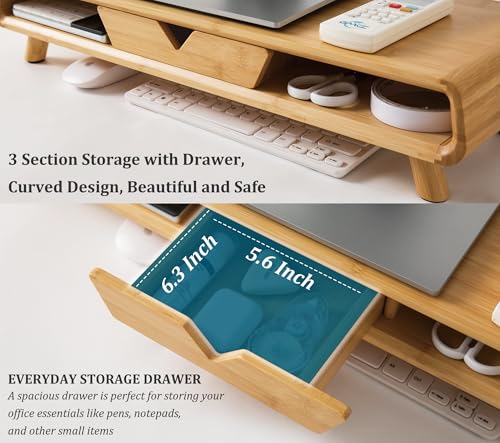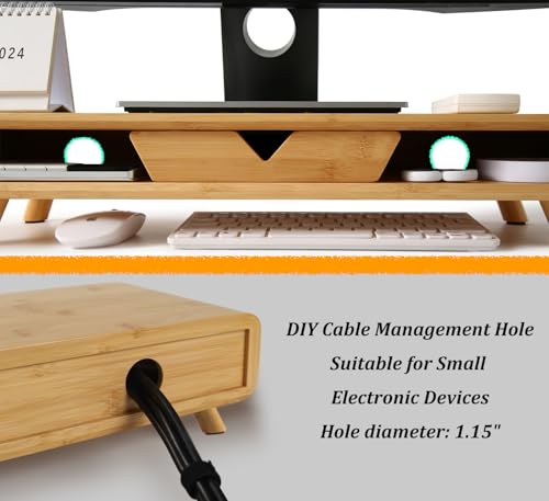Homerays - حامل شاشة خشبي مع درج من البامبو لا يتطلب تجميع بارتفاع مريح من هوميرايز