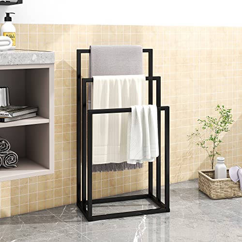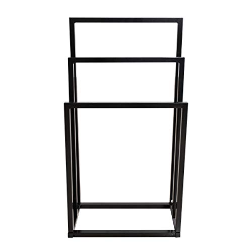 HOMERECOMMEND - حامل فوط معدن بتصميم قائم بذاته مكون من 3 قضبان من هوم ريكومنديد، مناسب للحمام والأماكن الخارجية وتجفيف فوط التنظيف، أسود، df569