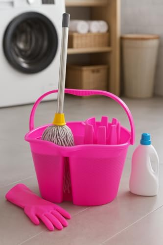 HOMESTA - دلو شرشوبة فاخر مزدوج المقصورة مع عصارة من هومستا، تصميم مقبض مريح (فوشيا)