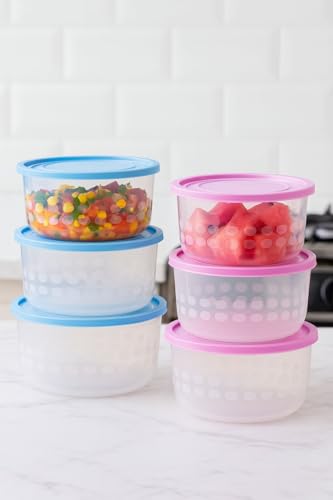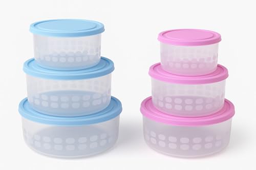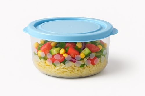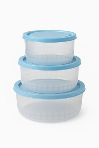 HOMESTA - حاويات تخزين طعام دائرية مع اغطية، بلاستيك شفاف، تصميم متعدد الاغراض من هومستا، مجموعة من 3 قطع (ازرق)