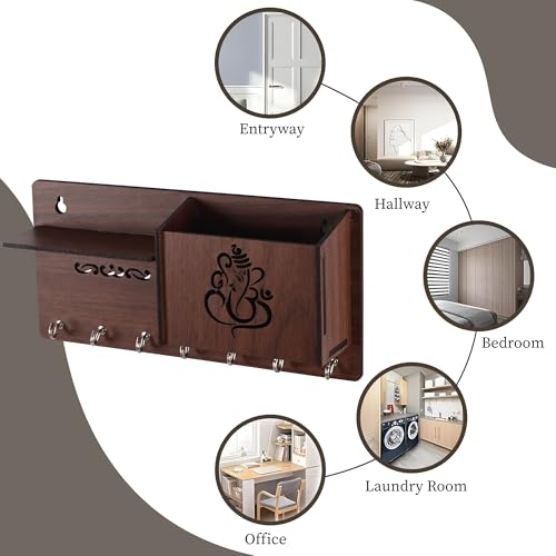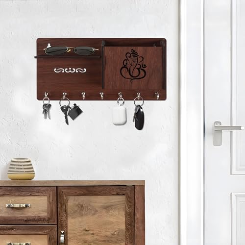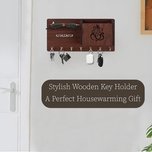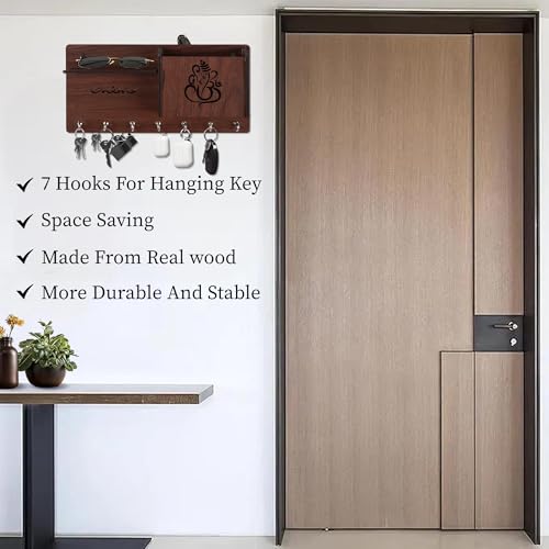 Homestic - حامل مفاتيح خشبي بـ 7 خطافات لديكور المنزل الأنيق، حامل مفاتيح للحائط وشماعات مفاتيح مع عناصر ديكور منزلية، لون بني (Ganesha-Brown)