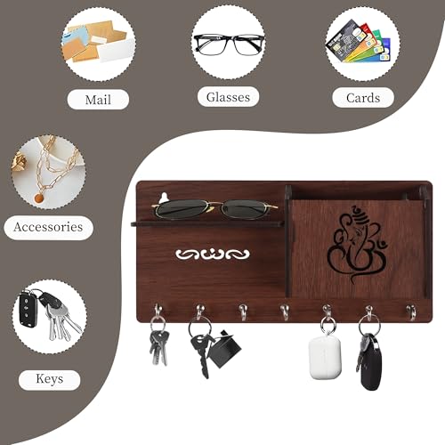 - ✅ محتويات العبوة: حامل مفاتيح - (قطعة واحدة) | اللون: لون بني (Ganesha-Brown) المادة - الخشب، أبعاد المنتج - 25 سم × 12 سم × 1 سم × 1 سم.