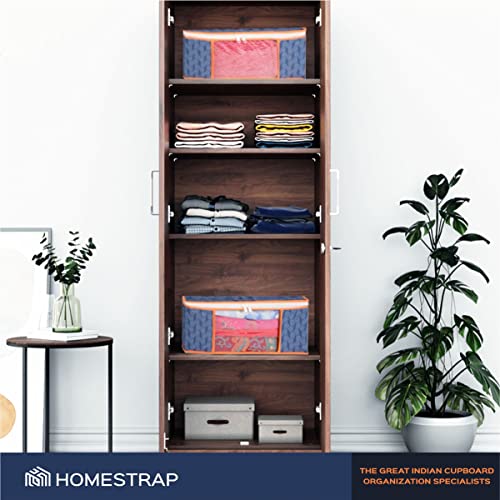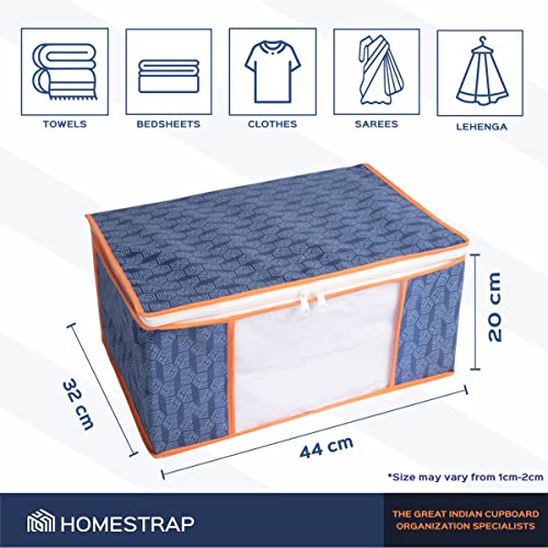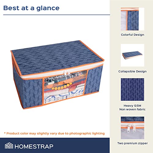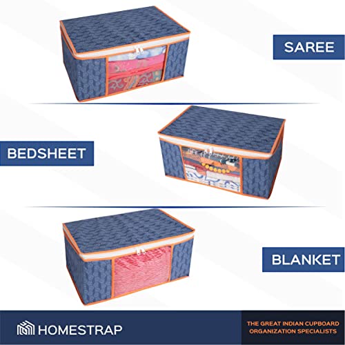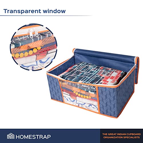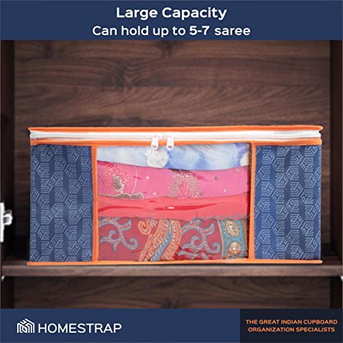 HomeStrap - أغطية ساري مطبوعة غير منسوجة من هوم ستراب، 6 قطع/ منظم لتخزين الملابس مع نافذة شفافة (أزرق كحلي مع حواف برتقالية)