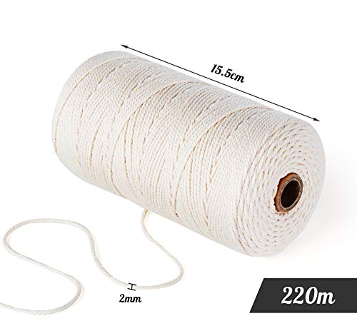 Homewit - خيط مكرمية 2 ملم × 220 متر من القطن بلون بيج، حبل مكرمية قطن طبيعي غير مبيض، حبل قطن للخبازين، خيط مطبخ من القطن الطبيعي من هوم ويت