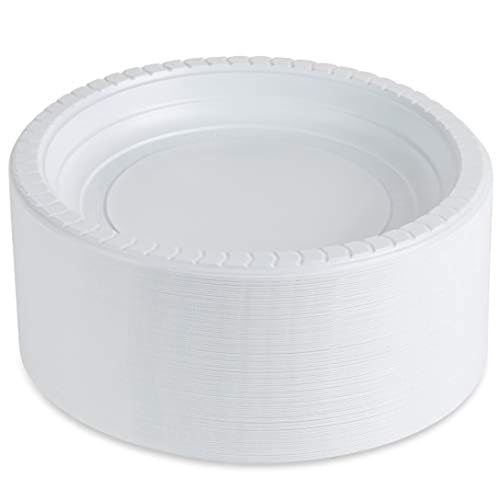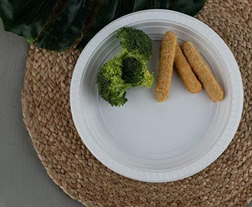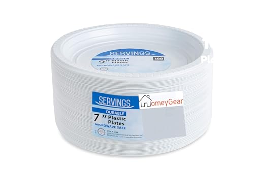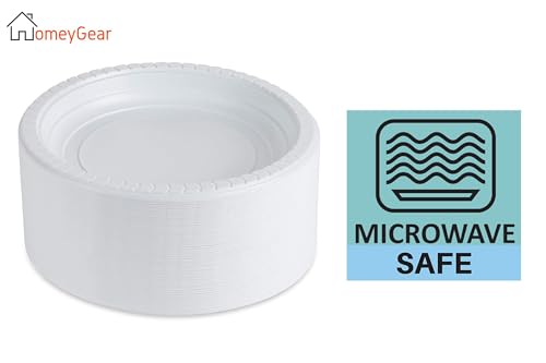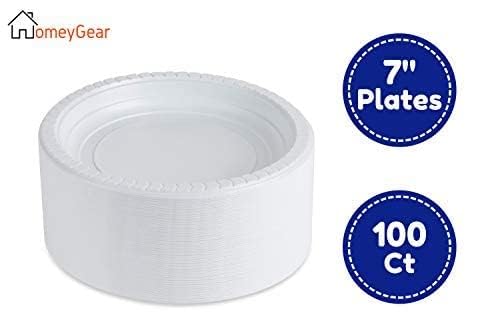 HomeyGear - اطباق مقبلات بلاستيكية بيضاء للاستعمال مرة واحدة بقطر 7 بوصة، وامنة للاستخدام اليومي في الميكروويف، 100 قطعة، من هوم جير