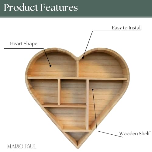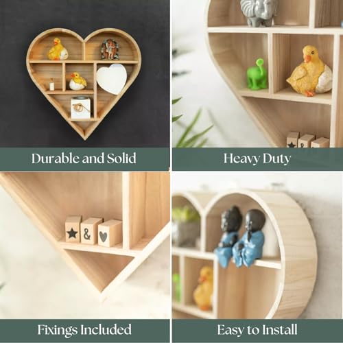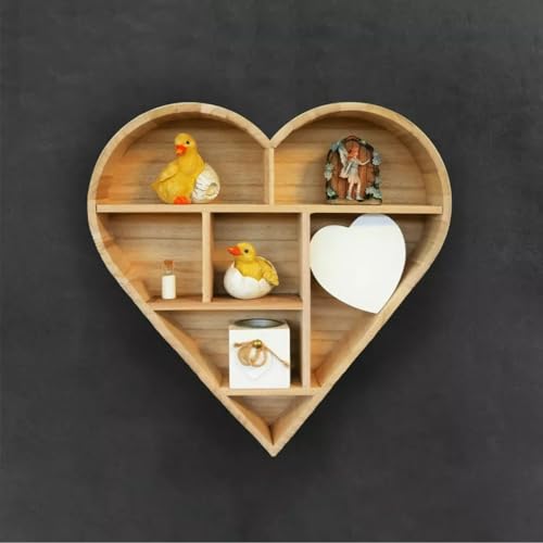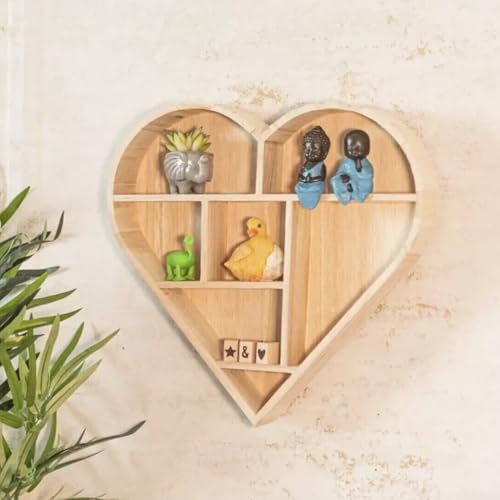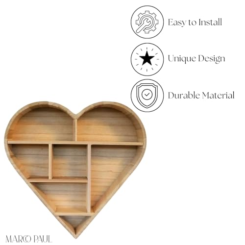HomeZone - أرفف حائط خشبية أنيقة بتصميم قلب عائم بتصميم عصري وفريد من نوعه/ريفي من هومزون- طبيعي