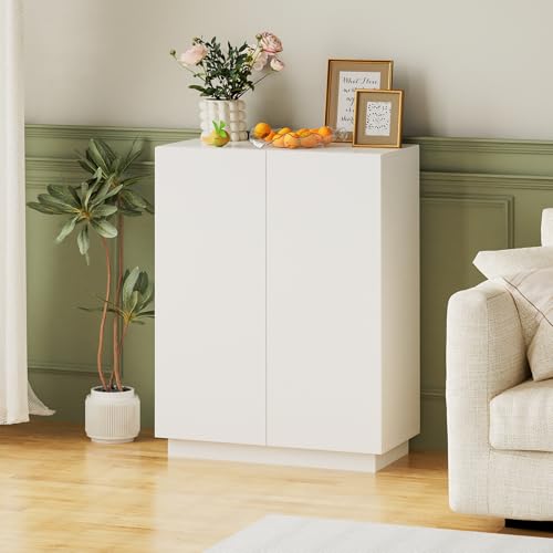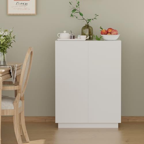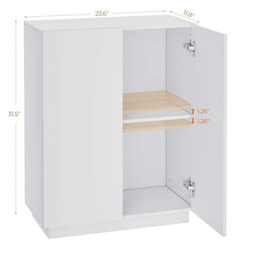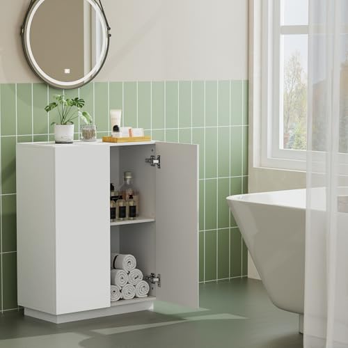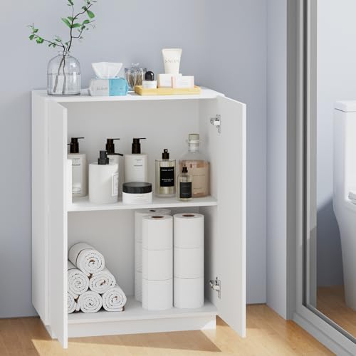 Homhedy - خزانة تخزين ارضية الحمام بباب مزدوج من هومهيدي وحدة للحمام منظمة حديثة رف قابل للتعديل غرفة المعيشة المدخل المطبخ ابيض خشب مُصنع