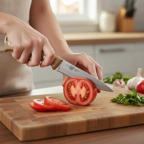 HOMI - سكين بمقبض خشبي AY-1-152 12 سم، سكين شيف من الفولاذ المقاوم للصدأ دقيق القطع مع مقبض مريح للتحضير والمطبخ من هومي، بني