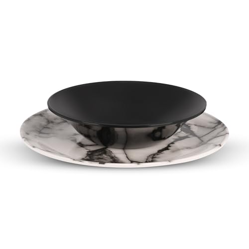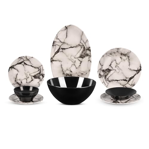 Generic - طقم عشاء ميلامين من 26 قطعة يكفي 6 أشخاص من هومي بلس، لون أسود رخامي