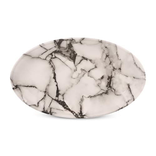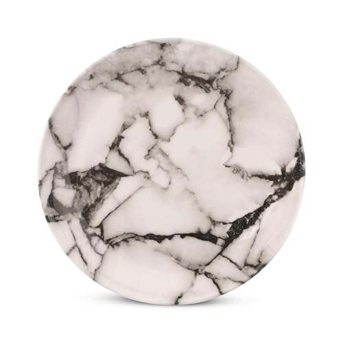 - تصميم رخامي أنيق: يتميز بنمط رخامي أسود وأبيض متطور يضيف لمسة فاخرة إلى طاولة الطعام، ويكمل أي نمط ديكور.