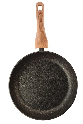 Homi - مقلاة بمقبض خشبي مقاومة للالتصاق بقطر 24 سم من هومي بلس، جرانيت، أسود