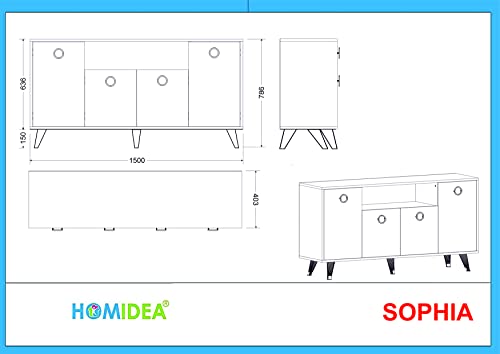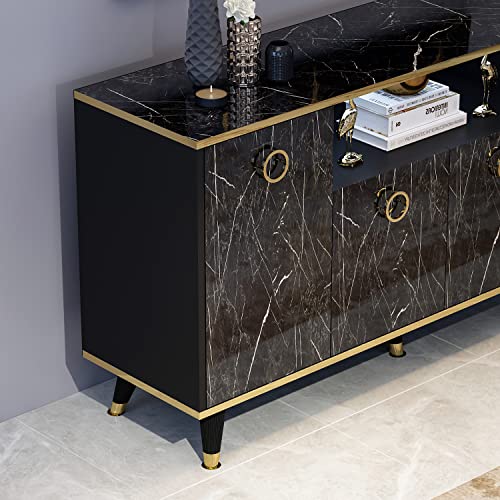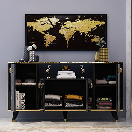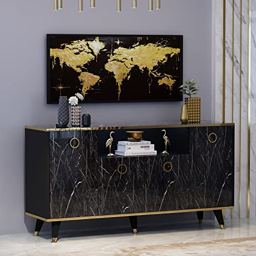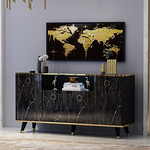 HOMIDEA - دولاب تلفزيون وكونسول ودولاب جانبي صوفيا، بأدراج ورف مع 4 أبواب لغرفة المعيشة والمطبخ والرواق والمكتب بتصميم ريفي (كونسول - أسود)