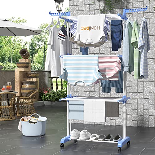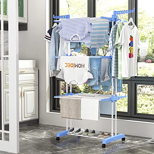 HOMIDEC - منشر غسيل ورف تجفيف الملابس قابل للطي من 4 طبقات للتعديل الستانلس ستيل كبير الحجم للاستخدام الداخلي والخارجي هوميدك لون ازرق