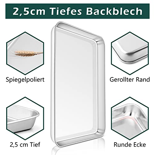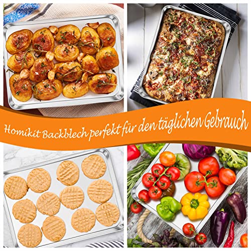 Homikit - هوميكيت صينية خبز عبوة من 2 كيك الستانلس ستيل فرن مستطيلة للخبز والتحميص 40 × 30 2.5 سم غير سامة وصحية امنة للاستخدام في غسالة الصحون فضي