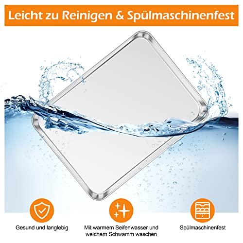 - استخدامات متعددة: تحتوي هذه الصينية المصنوعة من الستانلس ستيل على قطعتين من صينية الخبز مقاس 16 × 12 × 1 انش، مثالية لمعظم الأفران المنزلية، لخبز البسكويت واللحوم والخضروات والبيتزا أو غيرها من الأطعمة التي يمكنك التفكير فيها، كما أنها جيدة كصينية تقديم مناسبة للفواكه والبسكويت وتلبي احتياجاتك للاستخدام اليومي
