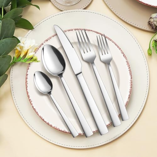 Homikit - مجموعة أدوات مائدة من الستانلس ستيل المصقول مكونة من 30 قطعة لـ 6 أشخاص، مجموعة أدوات مائدة مع سكين للمطاعم والحفلات العائلية، حافة ناعمة، آمنة للاستخدام في غسالة الأطباق من هوميكيت