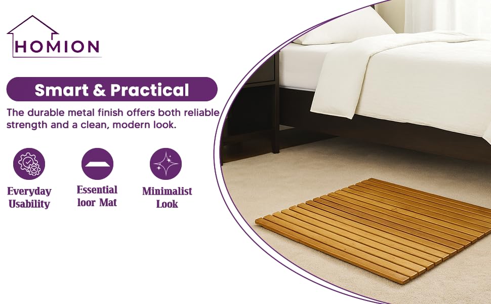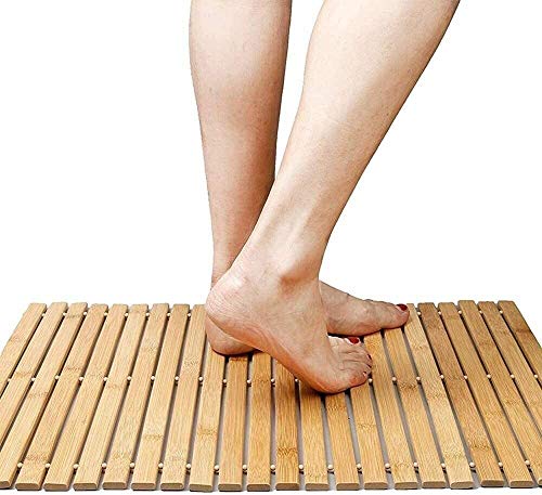 HOMION - دواسة حمام قابلة للطي من خشب البامبو شريطية لحمام وسبا وساونا مع أقدام مانعة للانزلاق لاستخدام داخلي وخارجي لمطبخ وغرفة نوم وحمام ومرحاض ودواسة لحيوانات أليفة وسفر وتخييم من هوميون (كبير 50 × 80 سم)