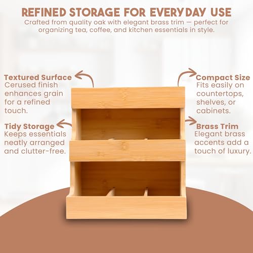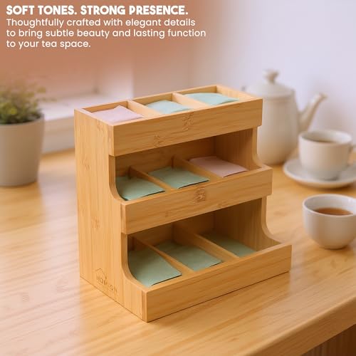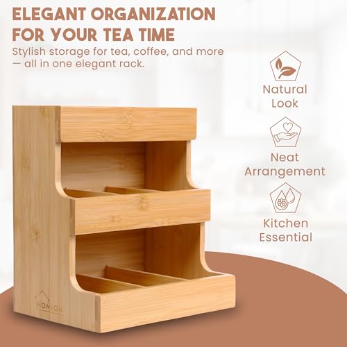 HOMION - منظم اكياس الشاي العمودي من هوميون صندوق خشبي للتخزين على سطح الطاولة لتخزين للمنزل والمطبخ والمكتب والمقهى