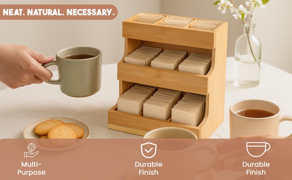 - حامل عرض أكياس الشاي - تم تصميم حامل الشاي هذا ليكون خفيف الوزن و. الهيكل الخارجي مزدوج الجدران من أجل المتانة! مصنوعة من خشب متين للغاية، وهي مادة مستدامة خفيفة الوزن ومقاومة للبقع والماء. لا يمتص الخشب ولا يمتص الماء الآخر من الخشب، ومن المؤكد أنه سيتحمل اختبار الزمن.