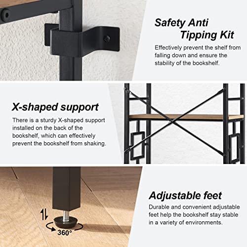 HOMISSUE - مكتبة كتب طويلة بإطار معدني وأرفف مفتوحة، وحدة رفوف كتب من الفئة الصناعية 2.14 م، أرفف كتب معدنية من 7 أدوار بتصميم ريفي للمكتب وغرفة المعيشة وغرفة النوم من هوم ايشو، بني