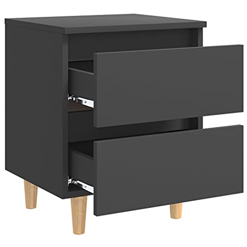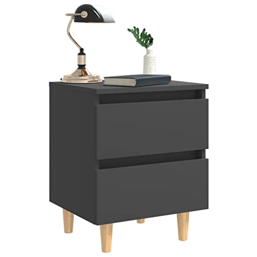 homiuse - طاولة بجانب السرير مع ارجل من خشب الصنوبر الصلب هوميوز مقاس 40 × 35 50 سم اثاث لغرفة النوم بدرجين وارضية متينة لكشف الاشياء الزخرفية والصور والكتب والنباتات المحفوظة بوعاء رمادي
