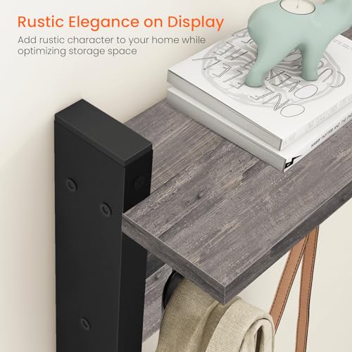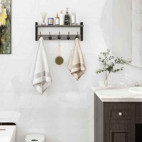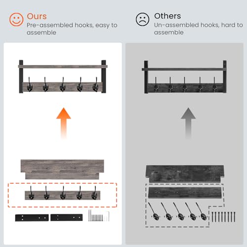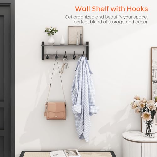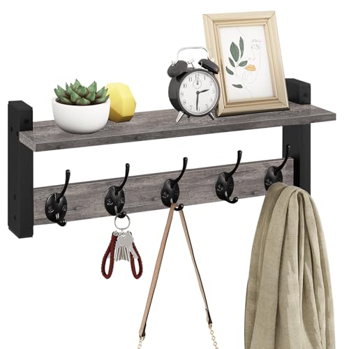Homode - هومود خطافات حائط مع رف، رف معطف يثبت على الحائط، رف مدخل مع خطافات للملابس وحقيبة الظهر والمفاتيح والمحفظة - رمادي ريفي