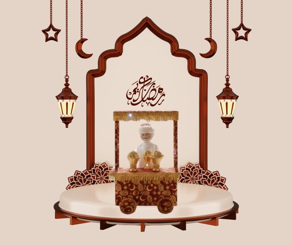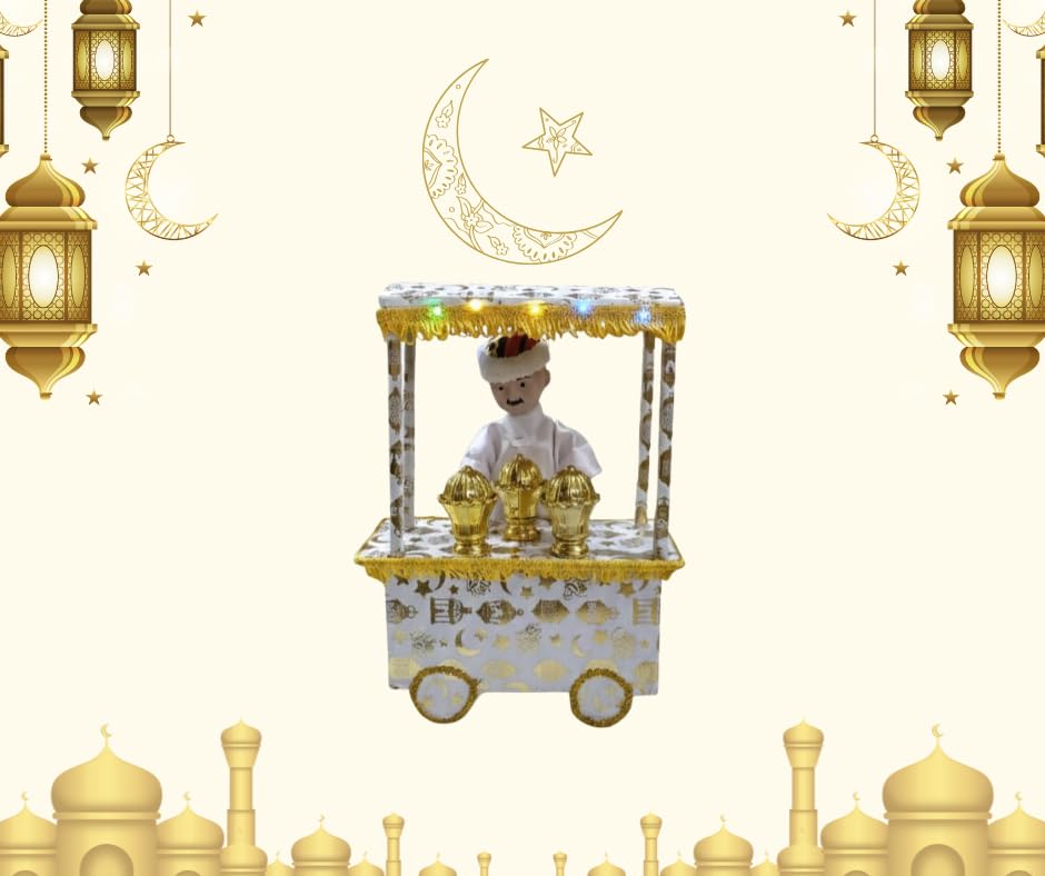 - إضاءة مدمجة: يأتي المجسم مع إضاءة LED مدمجة تضيء العربة لتخلق أجواء احتفالية ساحرة خلال شهر رمضان المبارك