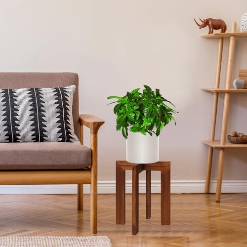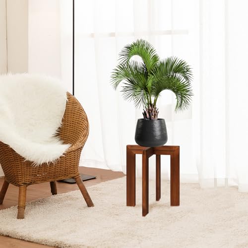 HOMSHIAM - حامل نباتات خشبي بارتفاع 42 سم للاستخدام الداخلي، حامل نباتات عصري من منتصف القرن، حامل وعاء زهور راتان، حامل طويل للأماكن الداخلية - مقعد خشبي ريفي بوهو لحامل وعاء النباتات، يناسب وعاء 12.7-38 سم