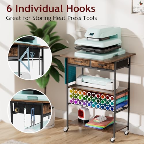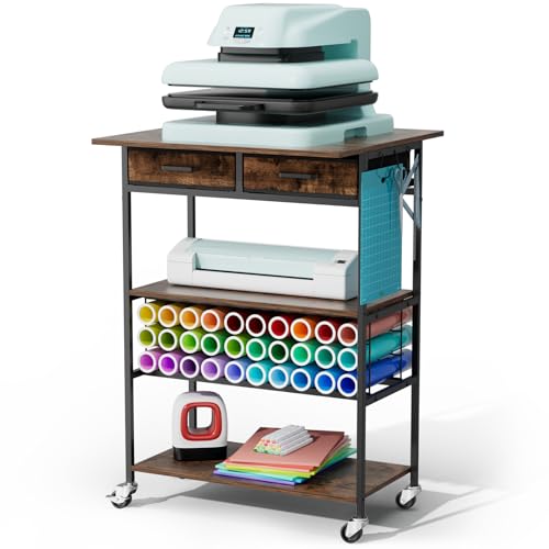 Homsorout - طاولة ضغط حراري متحركة من هومسوروت - حامل الة نقل الحرارة متوافق مع كريكوت، حامل لفة الفينيل، منظم طابعة التسامي الخشبية المعدنية لصناعة التيشيرتات، 23.6 انش × 19.6 انش
