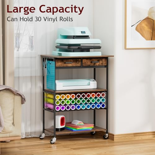 - [الأبعاد والتوافق] الأبعاد الكلية: الطول 23.6 انش × العمق 19.6 انش × الارتفاع 31.6 انش، أبعاد الرف المتوسط: الطول 19.6 انش × العمق 23.6 انش، قطر فتحة رف الفينيل: 1.9 انش، الرف العلوي متوافق مع جميع ماكينات كريكت، بما في ذلك صانع الكريكت صانع كريكوت 3 ، كريكت اكسبلور اير 2، كريكت اكسبلور 3، كريكت جوي، ايزي بريس ميني، ايزي بريس 2، سلسلة سيلويت كاميو وأكثر من ذلك.