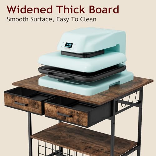 - [محطة عمل شديدة التحمل للحرفيين الجادين] سواء كنت تطبع القمصان أو تضغط على التصميمات أو تقطع أنماطًا معقدة، فإن هذه الطاولة توفر سطحًا قويًا ومساحة تخزين موثوقة لجميع معداتك. إنها محطة الحرف اليدوية المفضلة لديك لكل مشروع.