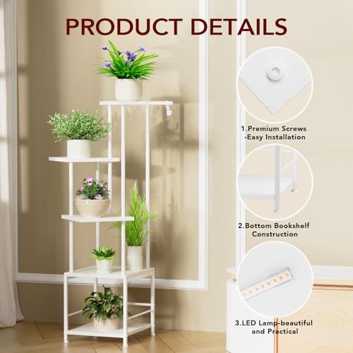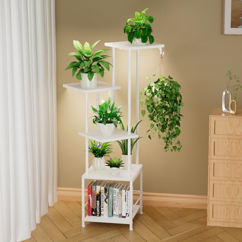 Homsorout - حامل نباتات مع ضوء نمو، حامل زهور من 5 مستويات، رف نباتات مقاس 1.12 متر مصنوع من الخشب والمعدن، رف نباتات داخلي لتزيين الحديقة والبلكونة من هومسوروت (أبيض)