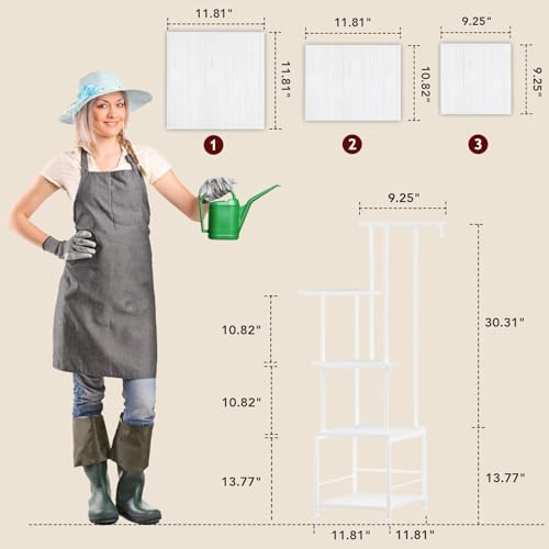 - ثابت وقوي: إطار حامل النباتات المعدني الخاص بنا مصنوع من أنبوب حديدي سميك عالي الجودة، والذي يتميز بسعة حمل جيدة ولا يصدأ بسهولة. الهيكل الرئيسي مصنوع من ألواح خشبية ذات حواف ناعمة ومقاومة للماء والقدمين في الأسفل تضمن ثبات الهيكل، لذلك لا يتأثر بظروف التربة المعقدة.