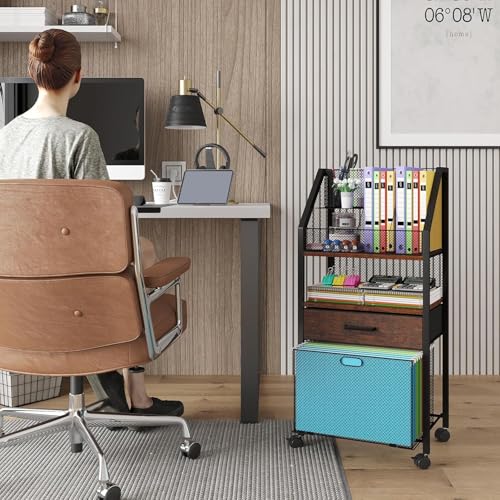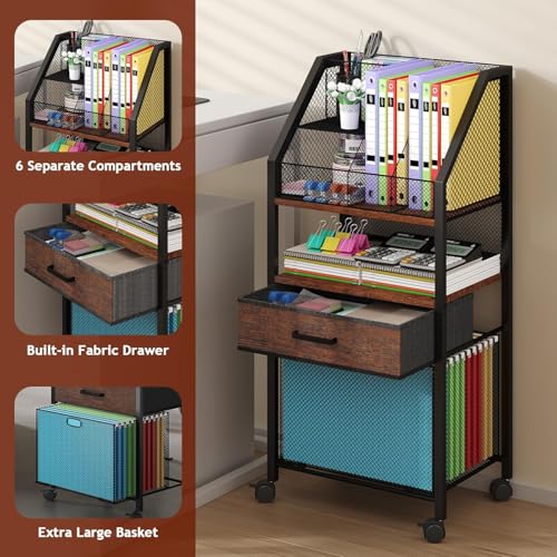 Homsorout - عربة ملفات دوارة بعجلات من هومسوروت - عربة تخزين متعددة الاستخدامات مع ادراج للمكتب والمنزل وتنظيم الفصول الدراسية، عربة دوارة للكتب والملفات واللوازم (بني واسود)