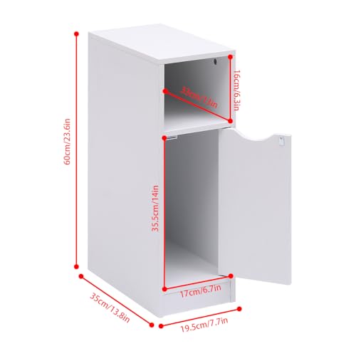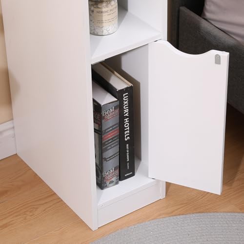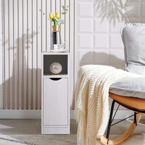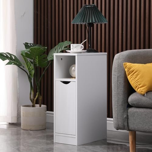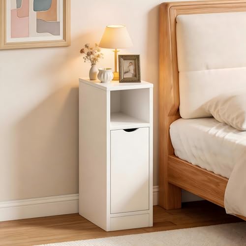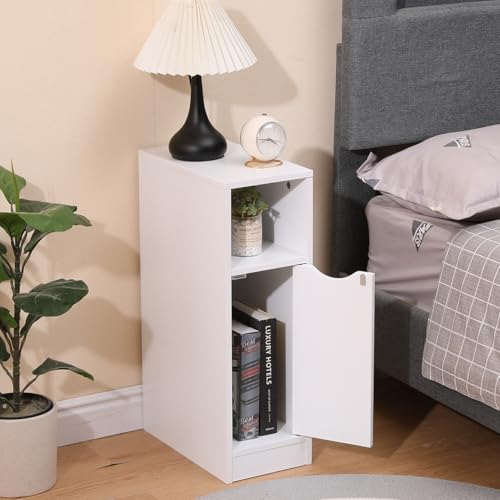 Homullel - طاولة جانبية رفيعة لغرفة النوم مع رف وباب من هوموليل، طاولة جانبية صغيرة لغرفة المعيشة، طاولة جانبية ضيقة للكنبة، طاولة مصباح للمساحات الصغيرة (ابيض)