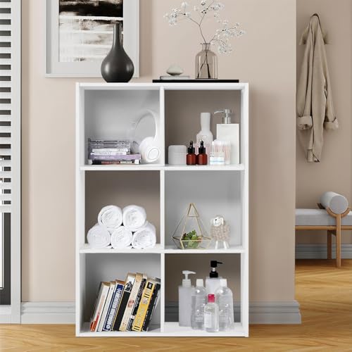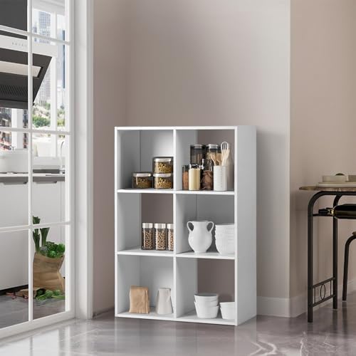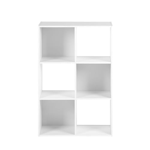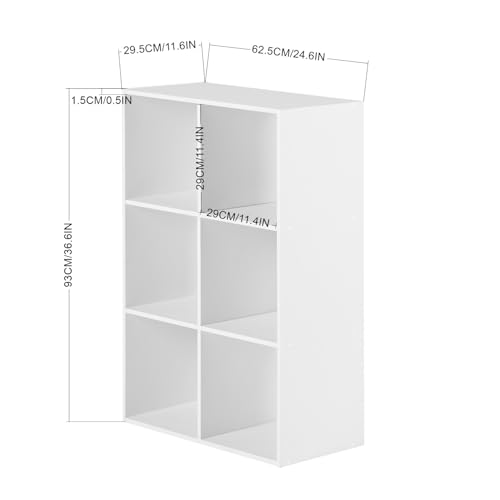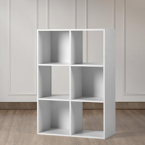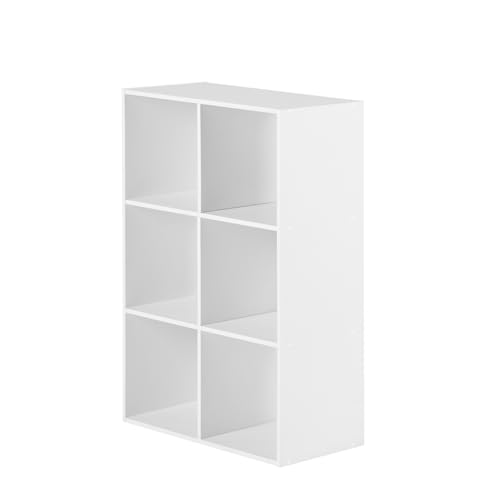 Homy Casa - خزانة كتب بتصميم مكعب بسيط مقاس 93 سم، منظم رفوف مفتوح مع مساحات عرض لغرفة المعيشة أو غرفة النوم أو غرفة الطعام من هومي كاسا، لون أبيض (بـ 6 أرفف مكعبة الشكل)